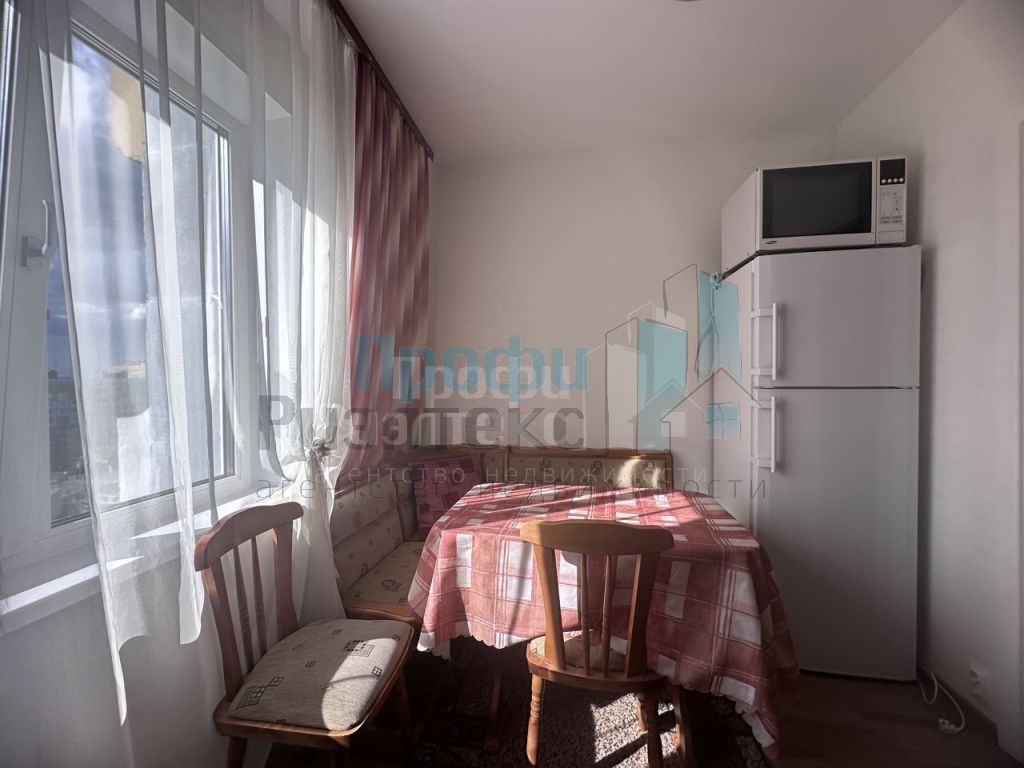 В комнате установлен кондиционер. Мебель для хранения одежды и хозяйственных принадлежностей - два больших шкафа в прихожей и комнате. Теплая квартира, лоджия застеклённая, вся необходимая техника имеется (холодильник, плита и духовой шкаф, микроволновая печь, чайник, кондиционер, стиральная машина, телевизор).