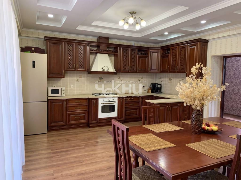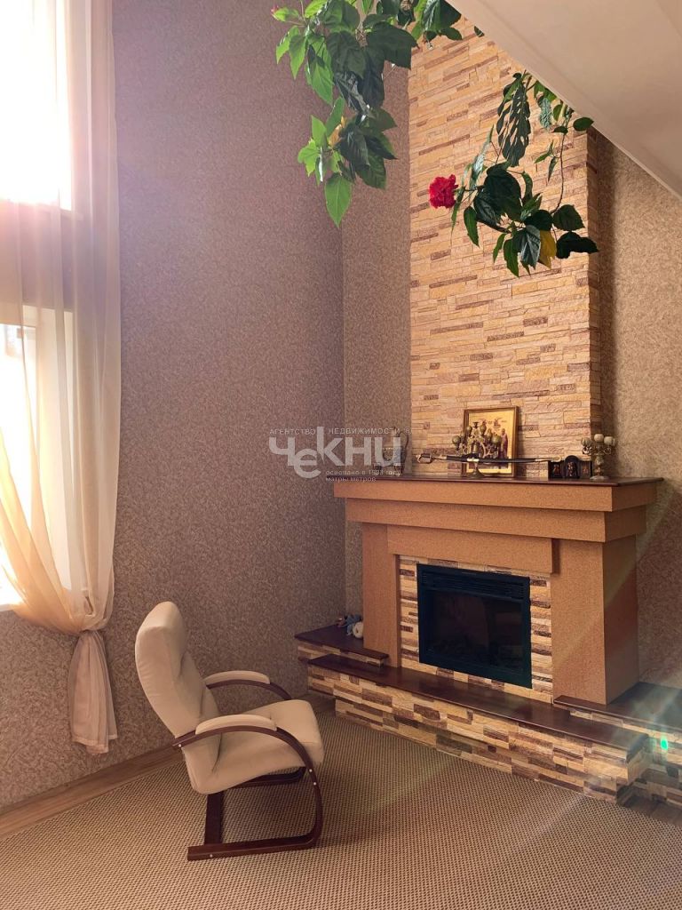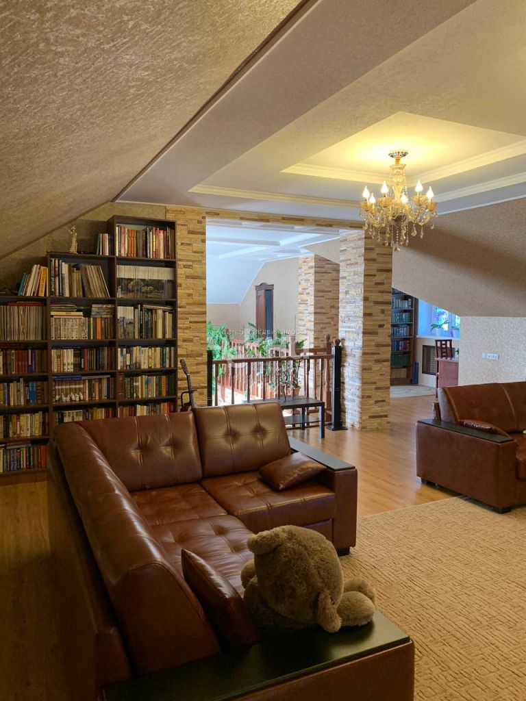 Дом построен на буроналивном фундаменте из газоблоков , фасад сделан с применением декоративной штукатурки . Во внутренней отделке использованы дорогостоящие строительные материалы: натуральное дерево , облицовочный камень. Первый этаж: кухня, зал со вторым светом , две спальни , кладовка с выходом в сад , с/у с ванной , тех.комната, высота потолков 3,2 м. Второй этаж: две спальни , просторный холл с двумя диванами и огромными книжными стеллажами, с/у.