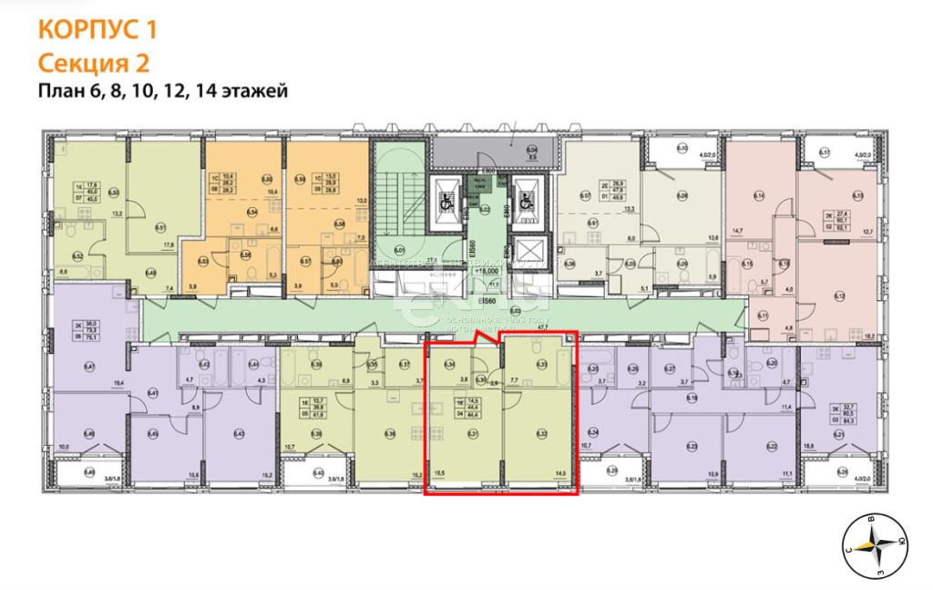 | Площадь (кв.м.) | Общая: 44.4 Жилая: 14.5 Кухня: 15.5 44.4 / 14.5 / 15.5 |