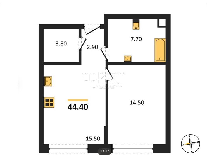 | Количество комнат | 1 – комнатная |