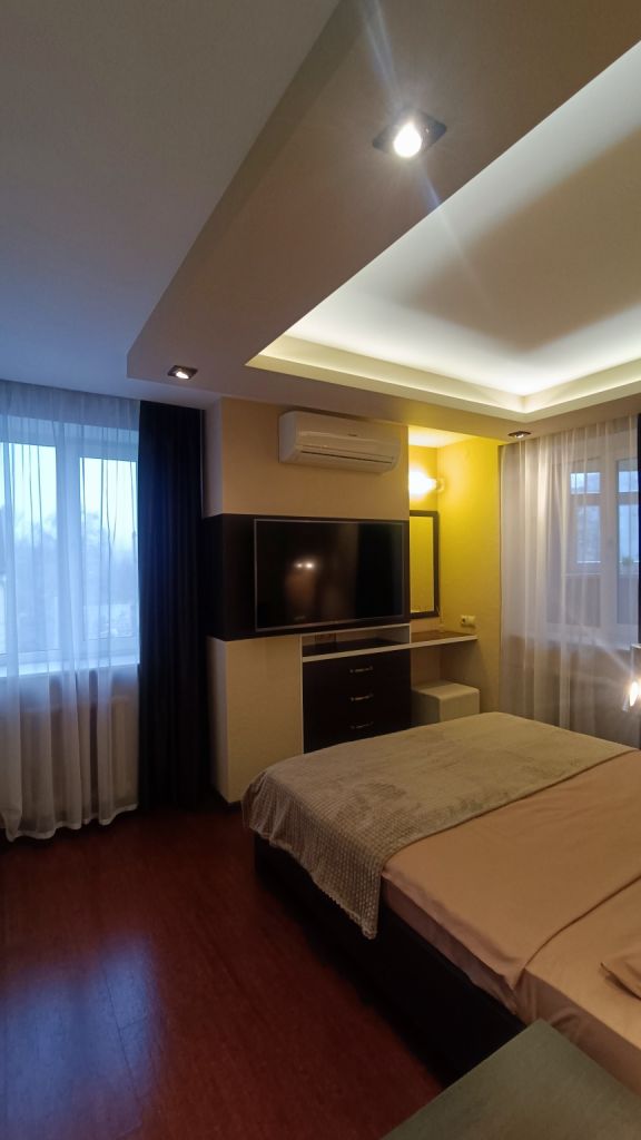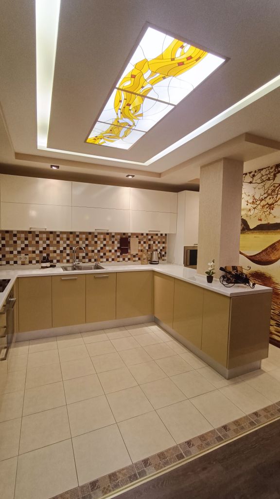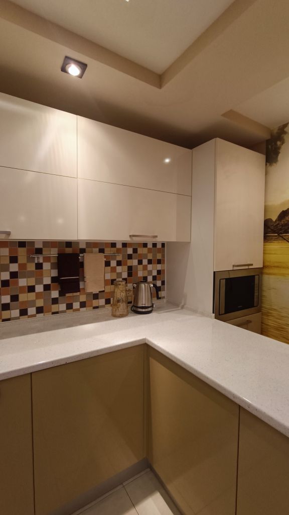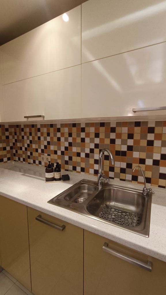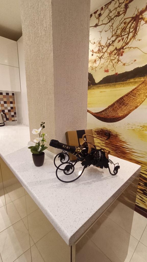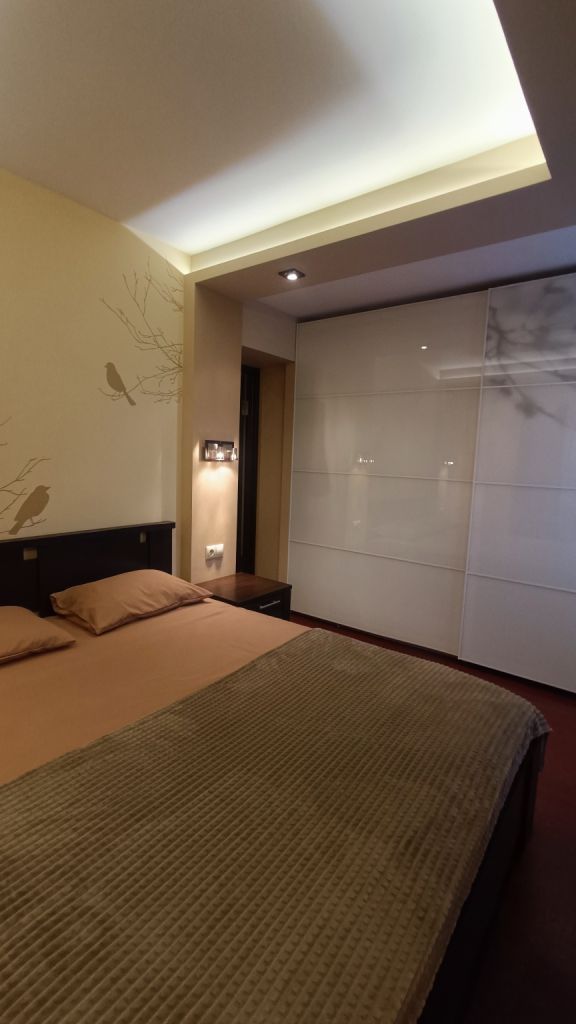 Входная дверь сейфового типа, встроенные шкафы и стеллажи для хранения, кухонный гарнитур «кухни Мария» (мебельная фурнитура BLUM), электрические теплые полы в прихожей, на кухне и в ванной, кондиционер Panasonic в спальной, бойлер THERMEX и стиральная машина Weissgauff в ванной, встраиваемая техника на кухне: холодильник Bosch, СВЧ печь Samsung, индукционная варочная панель и духовой шкаф HotPoint Ariston, вытяжка JetAir Pola, мойка нержавеющая сталь Blanco и смеситель Blanco. В санузлах – инсталляции Geberit для унитазов, сантехника Grohe и Hansgrohe. На кухне и в комнатах – LED телевизоры: LG, Samsung, Xiaomi (все – со SMART TV). В квартире имеется разводка сети Internet, WiFi. Пластиковые окна с москитными сетками, витраж на потолке в кухне.