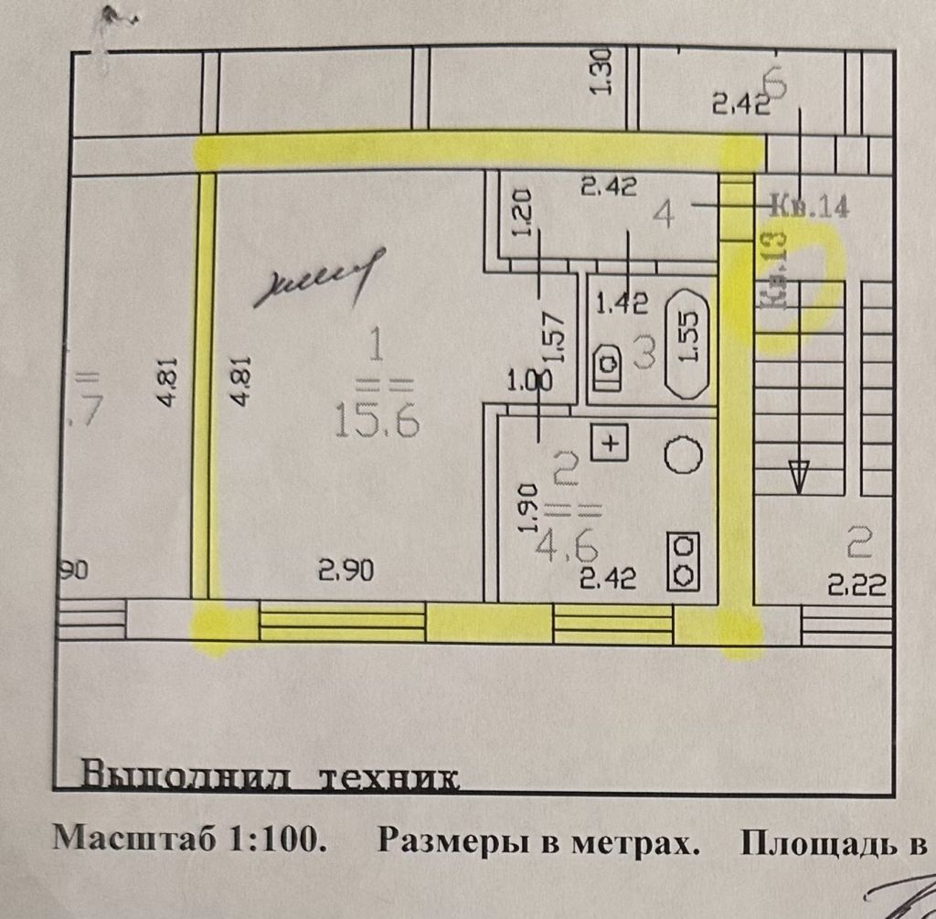 Площадь (кв.м.) Общая: 25.3 Жилая: 15.6 Кухня: 4.6 25.3 / 15.6 / 4.6